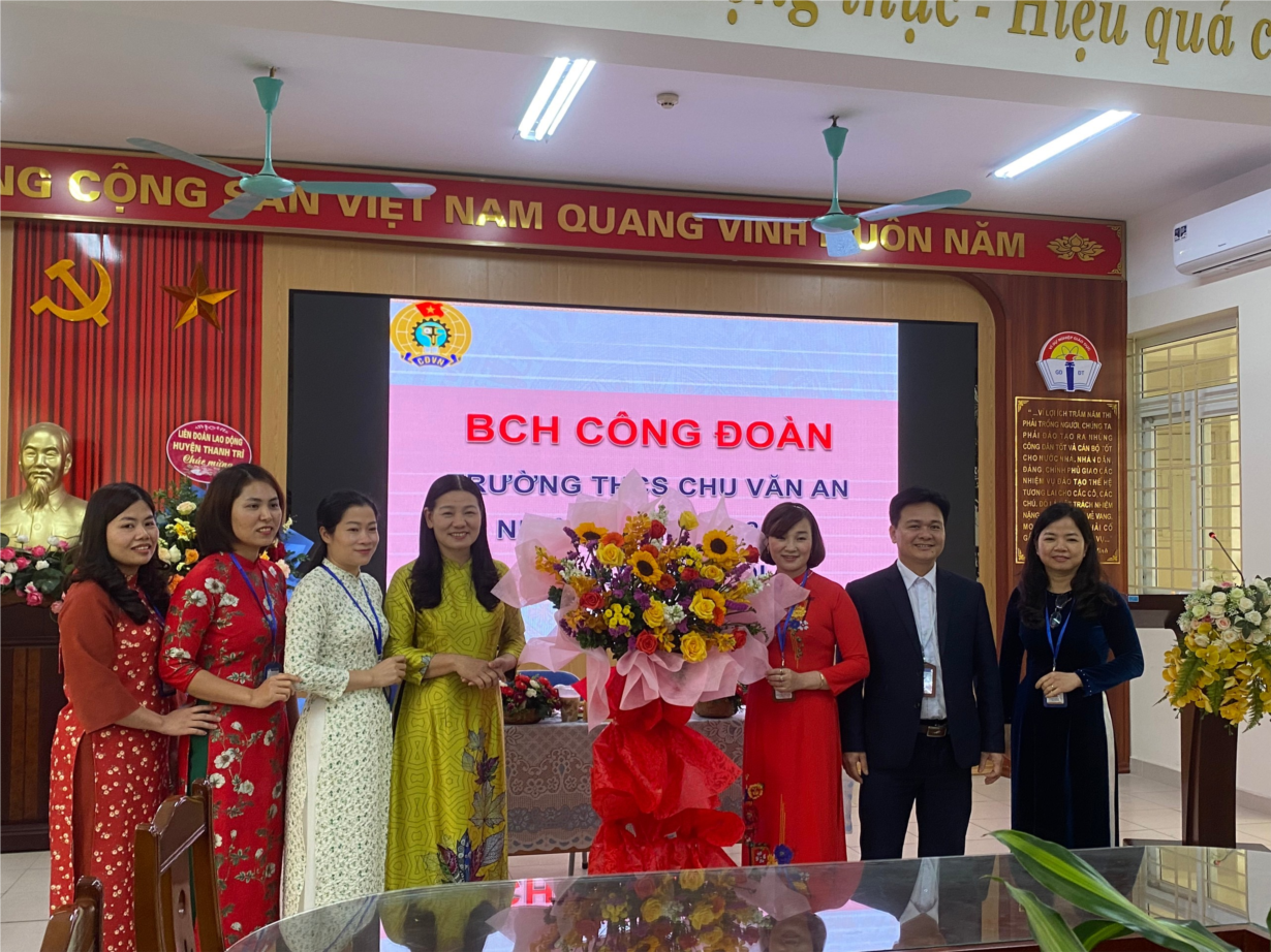 Thực hiện Kế hoạch số 08 ngày 18/5/2022 của LĐLĐ huyện Thanh Trì về việc tổ chức Đại hội Công đoàn cơ sở tiến tới Đại hội Công đoàn huyện Thanh Trì nhiệm kỳ 2023- 2028. Được sự nhất trí của Liên đoàn Lao động huyện Thanh Trì, Cấp ủy chi bộ và Ban giám hiệu Trường THCS Chu Văn An. Sáng ngày 24/02/2023, Công đoàn Trường THCS Chu Văn An long trọng tổ chức Đại hội Công đoàn nhiệm kỳ 2023 - 2028, nhằm đánh giá việc thực hiện Nghị quyết Đại hội nhiệm kỳ 2017-2022; kiểm điểm, đánh giá những kết quả đạt được trong nhiệm kỳ vừa qua và đề ra mục tiêu, phương hướng, nhiệm vụ trong nhiệm kỳ tới; đồng thời bầu Ban chấp hành Công đoàn Trường THCS Chu Văn An nhiệm kỳ 2023 – 2028 và bầu đại biểu đi dự Đại hội Công đoàn huyện Thanh Trì lần thứ XI. Đến dự và chỉ đạo Đại hội có Đại biểu LĐLĐ huyện đồng chí Nguyễn Thị Thắm – Phó Chủ tịch LĐLĐ huyện; Ban Giám hiệu nhà trường và đoàn viên công đoàn trường THCS Chu Văn An.