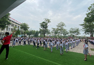 Trường THCS Chu Văn An đã triển khai thực hiện bài tập thể dục giữa giờ cho học sinh các khối vào mỗi giờ ra chơi 15 phút buổi sáng của các ngày trong tuần tại sân trường.