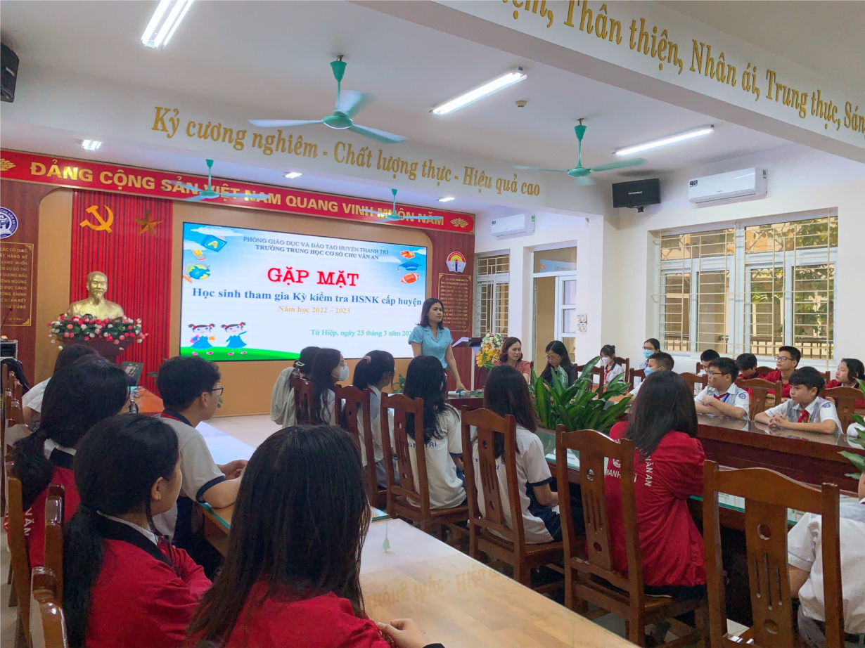 Chiều ngày 25/03/2023, tại phòng Hội đồng sư phạm, trường THCS Chu Văn An đã tổ chức chương trình gặp mặt và động viên của đại diện hội Cha mẹ học sinh với các em học sinh tham gia kì thi học sinh năng khiếu cấp Huyện năm học 2022 – 2023.