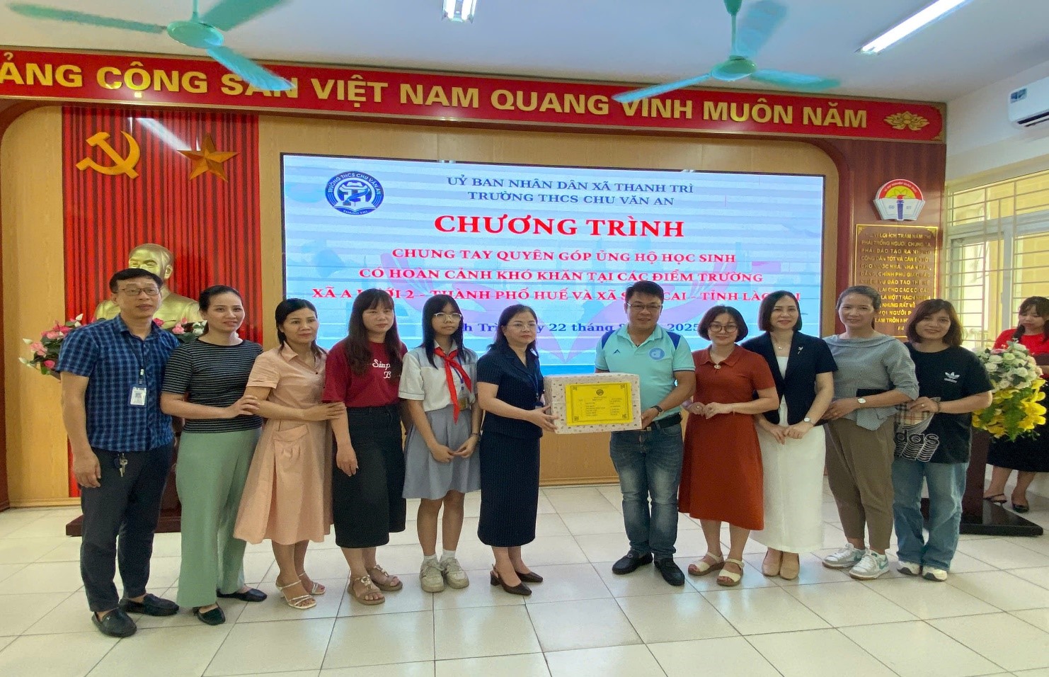 Ngày 22/8/2025, Trường THCS Chu Văn An (xã Thanh Trì, Hà Nội) đã tổ chức chương trình trao quà ủng hộ học sinh vùng cao – hướng về xã A Lưới 2 (tỉnh Thừa Thiên Huế) và xã Si Ma Cai (tỉnh Lào Cai). Đây là hoạt động thiện nguyện ý nghĩa, thể hiện tinh thần “tương thân tương ái – lá lành đùm lá rách”, với mong muốn chia sẻ khó khăn cùng bà con và học sinh nơi vùng sâu vùng xa.