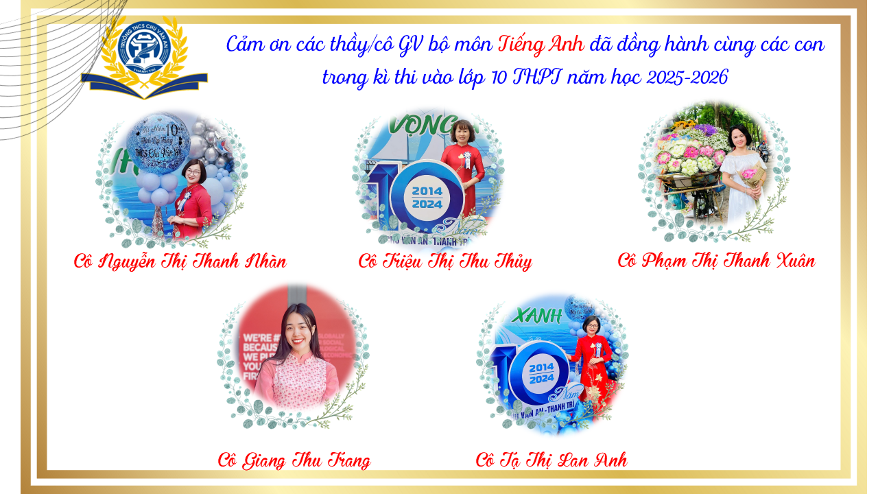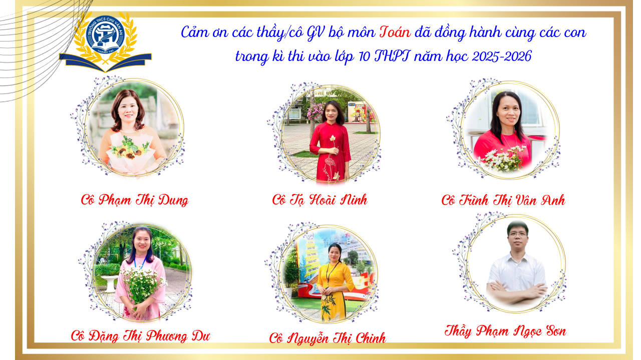 📘 Cảm ơn các thầy cô giáo bộ môn Toán - Ngữ văn - Tiếng Anh, những người đã đi cùng học trò trên chặng đường đầy áp lực, đầy kỳ vọng. Là những giờ học cuối ngày vẫn nồng ấm, hào hứng như buổi sớm mai. Là ánh mắt nhìn học trò thân yêu như đang nhìn chính đứa con của mình. Là những lần thức trắng soạn đề, sửa bài. Là sự kiên nhẫn vô bờ với những đứa trẻ còn làm thầy, cô và cha mẹ lo lắng.