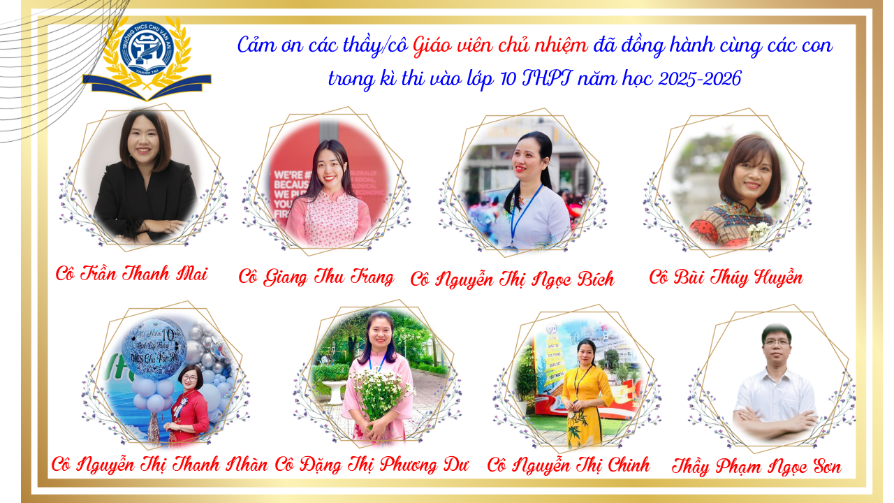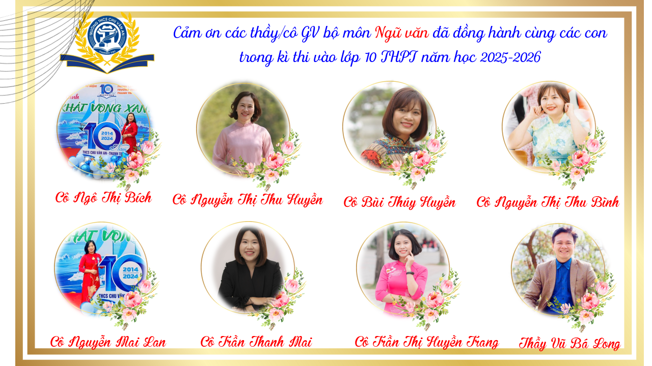 Lời tri ân gửi đến các thầy cô giáo trong Ban Giám hiệu, giáo viên chủ nhiệm các thầy cô dạy Toán - Ngữ văn - Tiếng Anh và các thầy cô bộ môn lớp 9 trường THCS Chu Văn An!