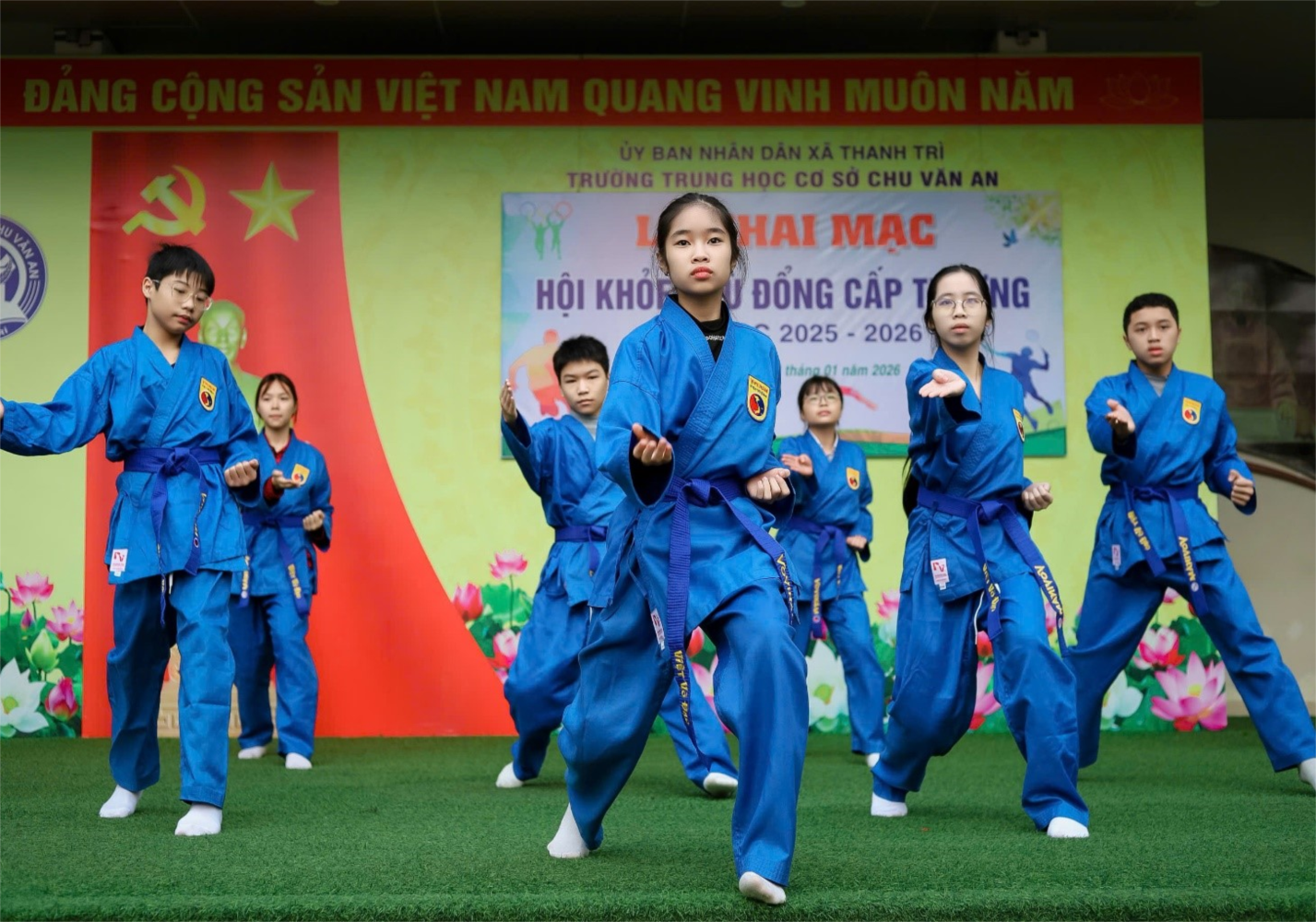 Đại diện vận động viên và trọng tài đã thực hiện lễ tuyên thệ, khẳng định tinh thần thi đấu trung thực, cao thượng, khách quan và công bằng. Tiếp đó là nghi thức rước đuốc và châm đuốc Hội khỏe, biểu tượng cho ngọn lửa của sức trẻ, ý chí, niềm tin và khát vọng vươn lên của học sinh Trường THCS Chu Văn An.