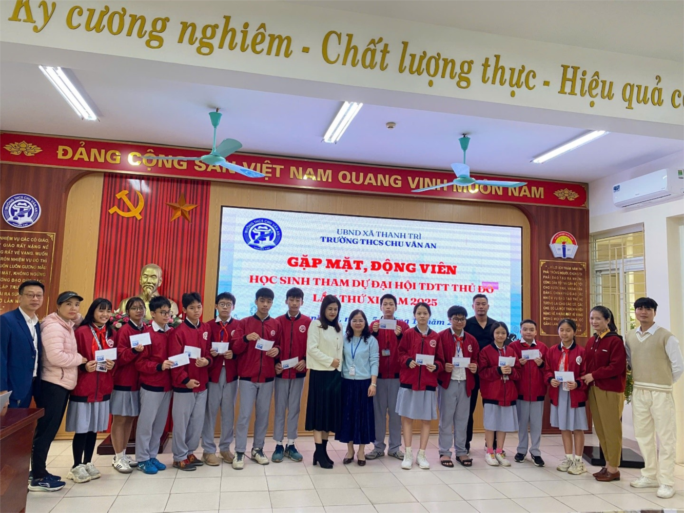 Hướng tới Đại hội Thể dục Thể thao Thủ đô lần thứ XI năm 2025, sáng ngày 05/11/2025, Trường THCS Chu Văn An Thanh Trì long trọng tổ chức chương trình gặp mặt, động viên học sinh tham gia thi đấu – những gương mặt tiêu biểu, đại diện cho tinh thần thể thao, ý chí vươn lên và nghị lực vượt khó của học sinh nhà trường.