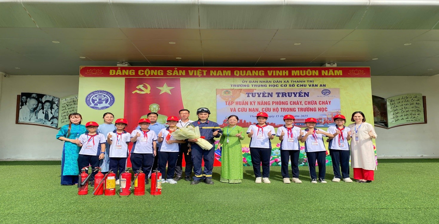 Thực hiện chủ trương của UBND thành phố Hà Nội về tăng cường công tác y tế trường học, chăm lo sức khỏe, an toàn cho học sinh; đồng thời nhằm trang bị cho các em những kỹ năng sống cần thiết. Ngày 15/09/2025, Trường THCS Chu Văn An – xã Thanh Trì đã long trọng tổ chức buổi tập huấn nghiệp vụ phòng cháy chữa cháy (PCCC) và cứu nạn cứu hộ (CNCH) cho toàn thể cán bộ, giáo viên, nhân viên và học sinh toàn trường. Đây là hoạt động thiết thực, có ý nghĩa quan trọng trong việc nâng cao nhận thức và kỹ năng ứng phó với các tình huống khẩn cấp.