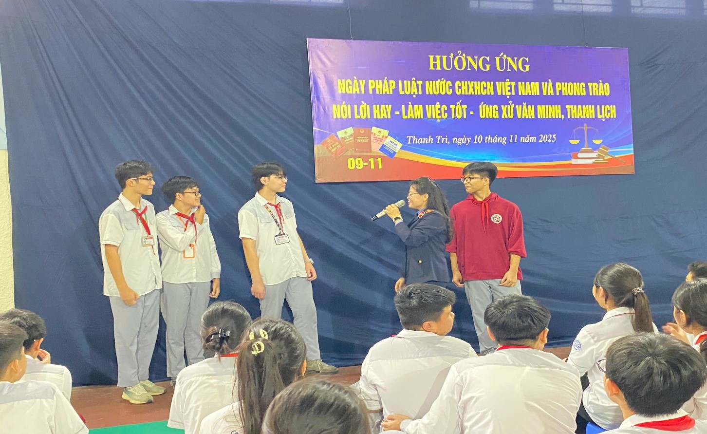 Hòa trong không khí thi đua sôi nổi của cả nước chào mừng Ngày Pháp luật nước Cộng hòa xã hội chủ nghĩa Việt Nam (9/11), sáng ngày 10 tháng 11 năm 2025, Liên đội Trường THCS Chu Văn An – xã Thanh Trì đã long trọng tổ chức Chương trình hưởng ứng Ngày Pháp luật Việt Nam và phong trào “Nói lời hay – Làm việc tốt – Ứng xử văn minh, thanh lịch”.