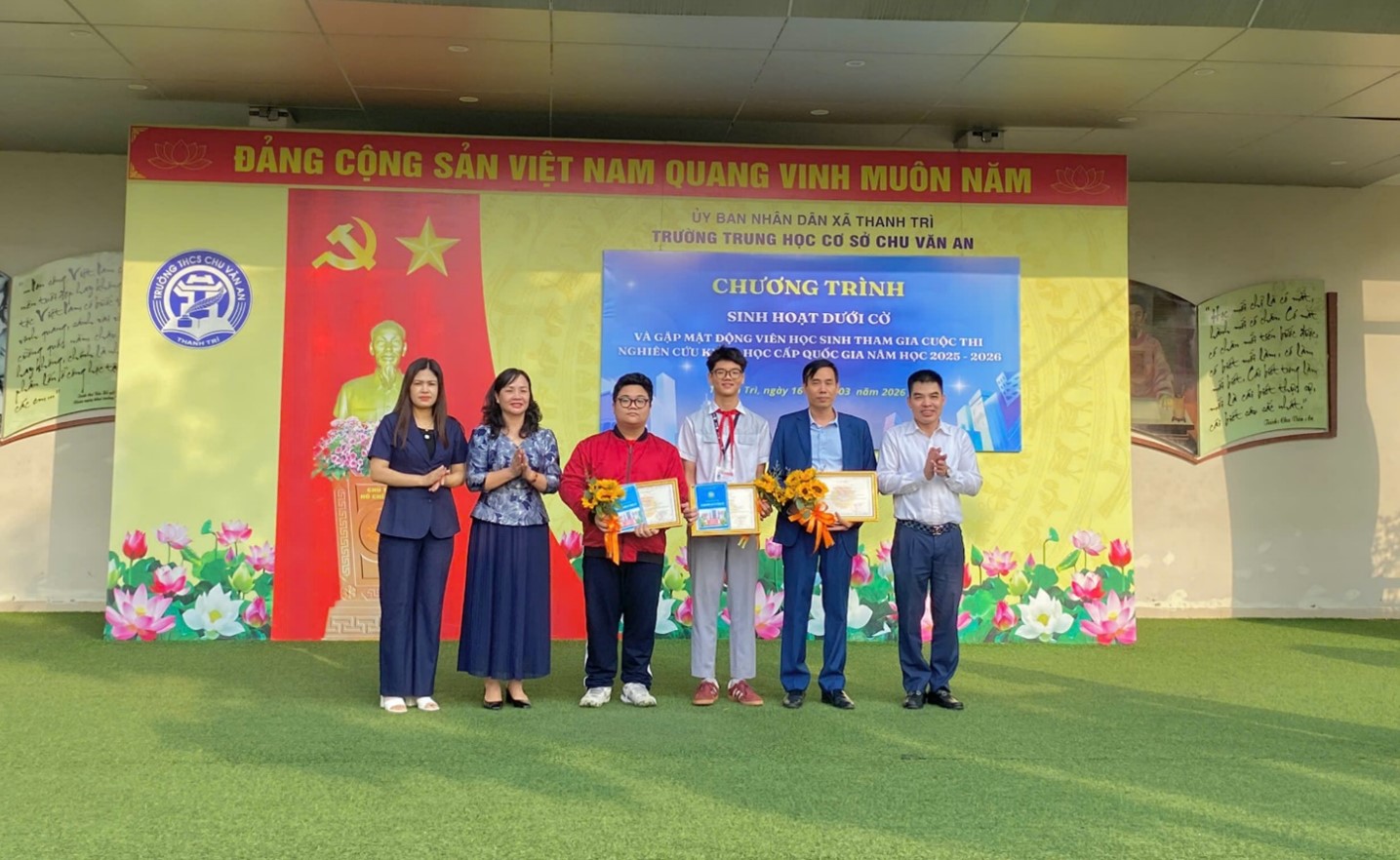 Thành tích này không chỉ là niềm tự hào riêng của cá nhân các em học sinh mà còn là niềm vinh dự lớn đối với địa phương và nhà trường. Trong buổi Gặp mặt động viên học sinh tham gia cuộc thi nghiên cứu khoa học cấp Quốc Gia năm học 2025 – 2026 nhà trường rất vinh dự được đón tiếp các vị đại biểu từ xã Thanh Trì:
